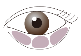 下まぶたの内部には「眼窩隔膜」という膜で仕切られた三つの小部屋があり、それぞれの中に「眼窩脂肪」という少量の脂肪が詰まっています。