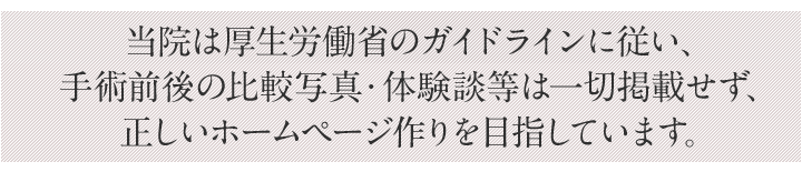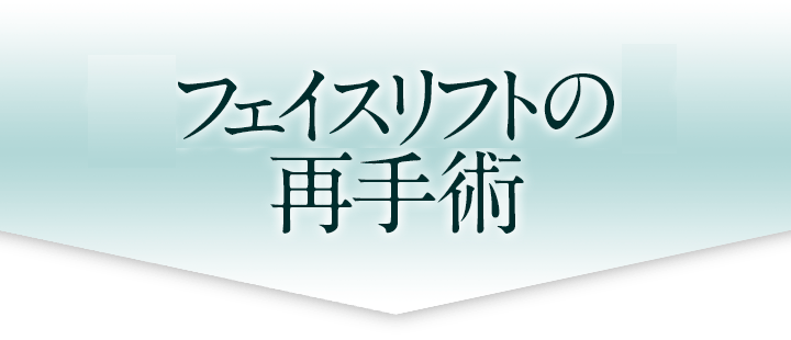 「フェイスリフト」の手術をしても、ほとんど変化しなかった場合や、 また、年を重ねれば再び老化し、たるみが出現することは避けられません。 「フェイスリフト」の再手術も行なっております。 あきらめずに、まず一度ご相談ください。 |