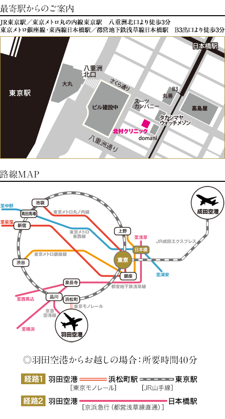東京都中央区日本橋3-2-5 毎日 日本橋ビル1F フリーダイヤル0120-200-986 海外からの電話は+81-3-3279-2928 受付時間 10:00〜18:00 年中無休 当院は完全予約制です。