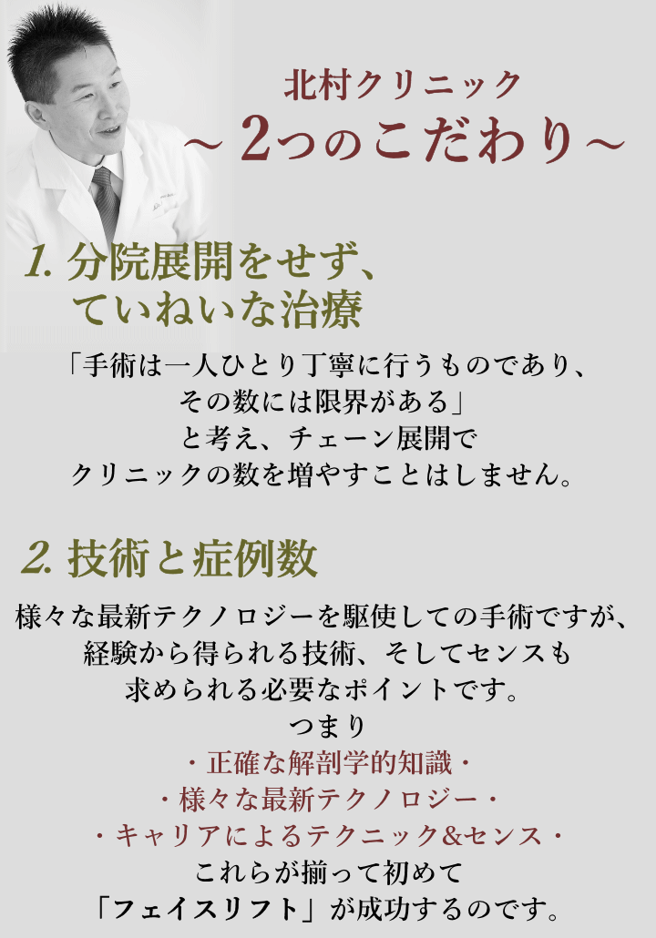 「北村クリニックは地方にはないのですか?」というご質問を数多く頂きます。これは「常に最善の治療を提供する」という開院以来からの信念によるもので、当院は分院展開をせず、東京・八重洲の本院のみで治療にあたっています。この方針に共感してくださる方々も多く、北海道から九州・沖縄、さらに遠くアメリカ・ヨーロッパなどの海外から、多くの患者さんが北村クリニックを訪ねてくださいます。 ![]() 技術と症例数